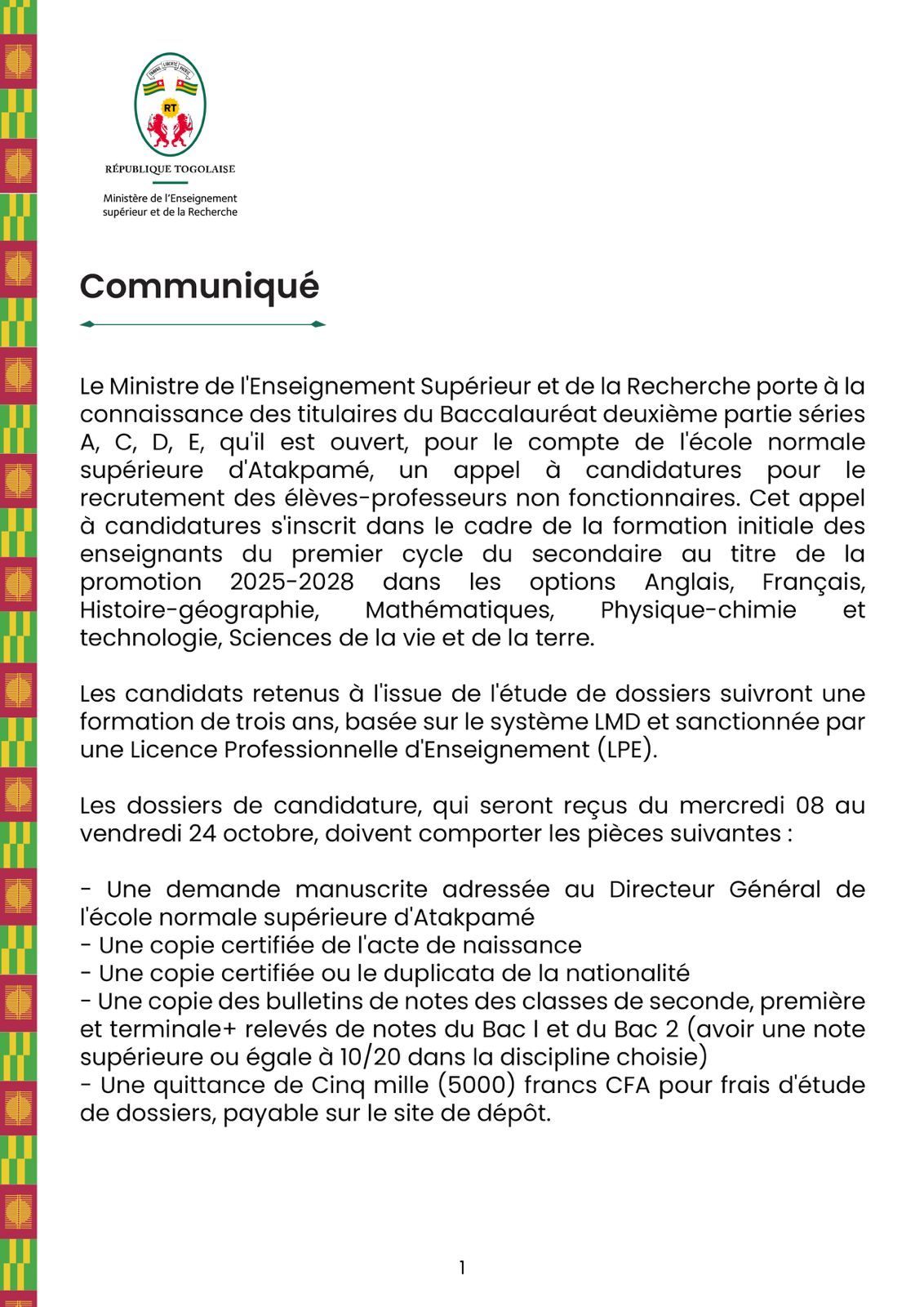 Appel à candidatures pour la formation en Licence Professionnelle d’Enseignement (LPE)